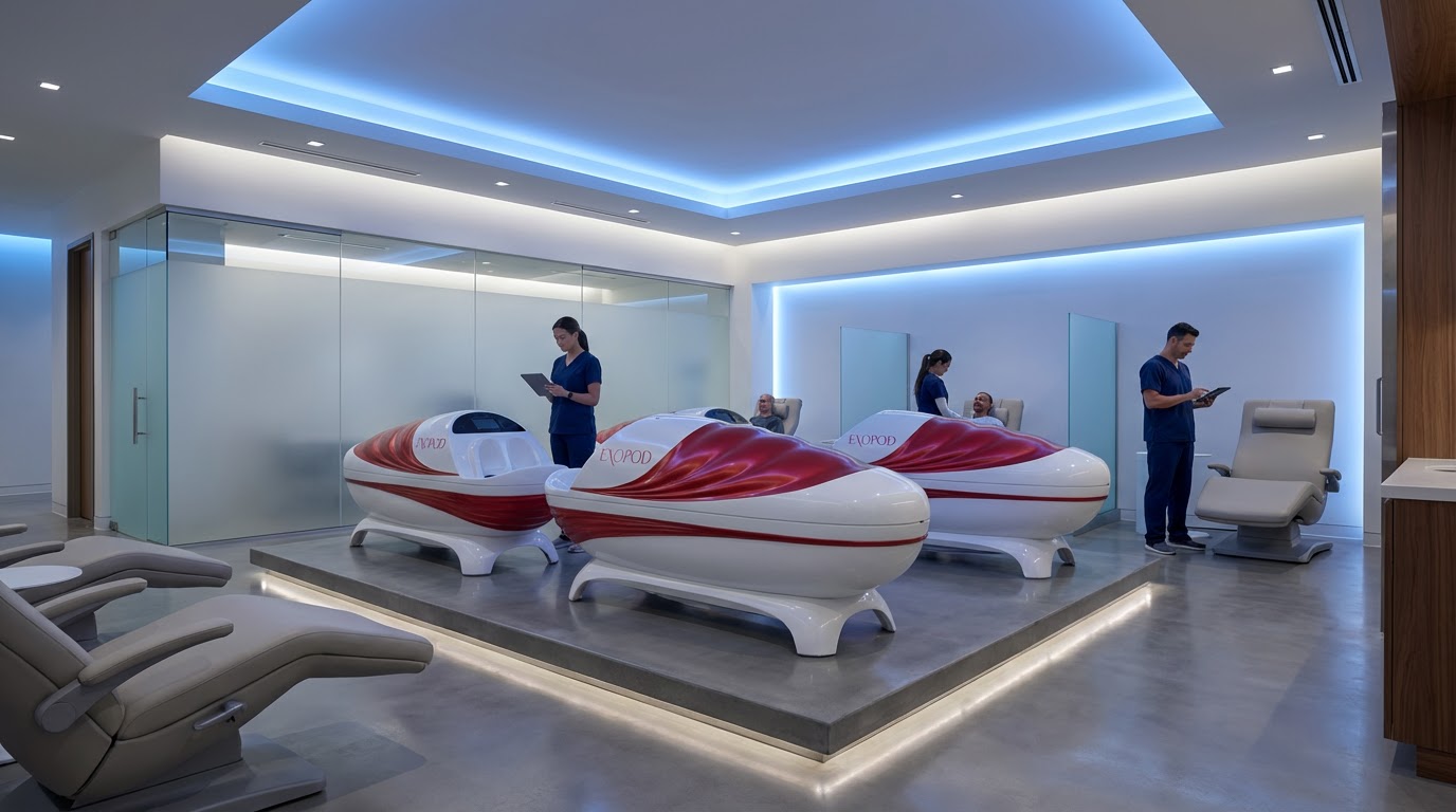 Exopod is an advanced, enclosed wellness system designed to deliver a safe, hygienic, and rejuvenating experience.